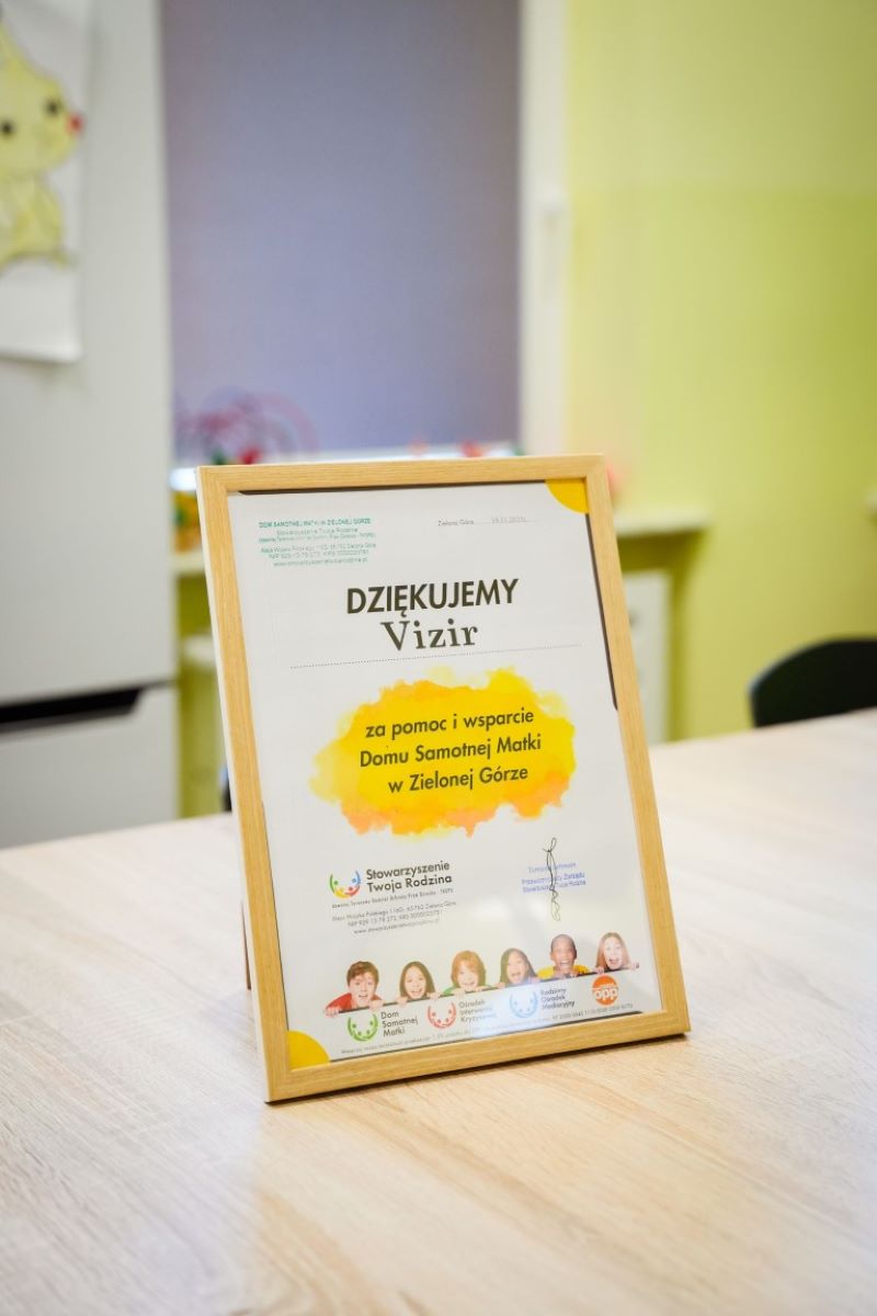 Z okazji ukończenia remontu przy wejściu do placówki na drzewie obrazującym wsparcie różnych podmiotów Stowarzyszeniu zawisł pomarańczowy liść z napisem „Vizir 2025” - symboliczne podziękowanie marce za przekazaną pomoc. Dzięki pomocy marki podopieczne Stowarzyszenia mogą cieszyć się odnowionymi wnętrzami: czystymi, jasnymi, wolnymi od wilgoci. Odnowione zostały sypialnie i jadalnia, pokój zabaw, powstało także nowe pomieszczenie - „pokój nauki”, gdzie oprócz komfortowego wnętrza dzieci mogą korzystać z pomocy edukacyjnych. Dużym wyzwaniem była pralnia, która ze względu na intensywną eksploatację wymagała gruntownego remontu.